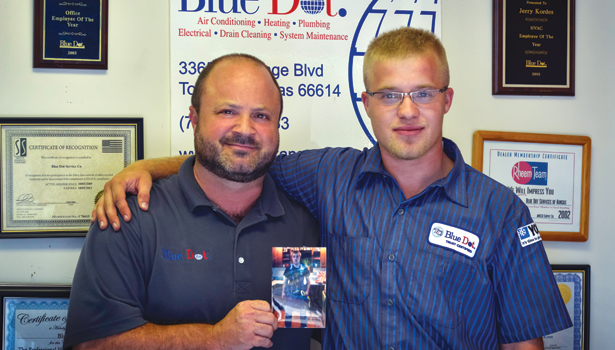 Von has been featured in The H.V.A.C News and has been a featured speaker at the Kansas Health Homes Conference, and The Maytag National Convention. He also founded www.forthesurvivors.org an resource based website for parents who have lost a child, after his son Jacob was killed in a work related accident. Von is currently working on a book called “The Letters Project”. Von is pictured with his son Jordan a technician at Blue Dot and Jacobs twin brother.