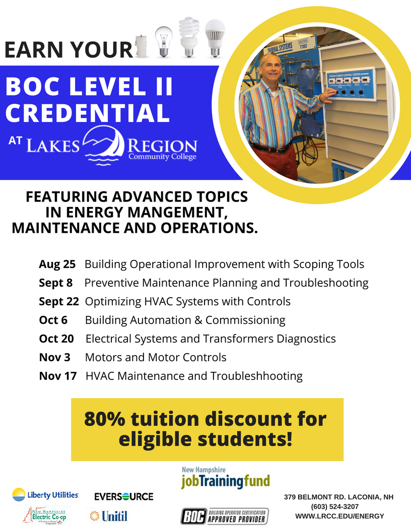BOC's Approved Provider in New Hampshire, Lakes Region Community College, will be offering a BOC Level II course beginning August 25th. LRCC has offered BOC Level I in the region since 2013 a…Read more