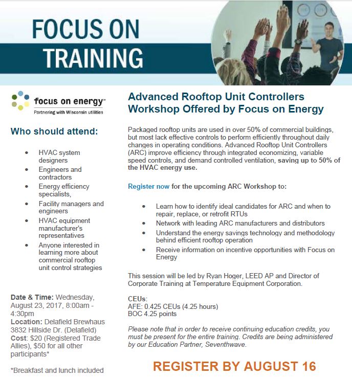 Focus on Energy WI offering Advanced Rooftop Unit Training