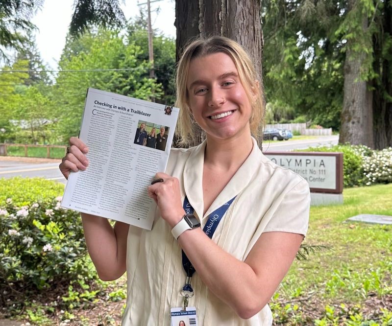 Yockey’s supervisor and team lead, Frank Wilson, is the Executive Director of Operations at Olympia School District. “Grace has an excellent grasp of our district goals,” Wilson shared, “They align well with her own personal beliefs, which helps keep the [sustainability] conversation at the forefront.”