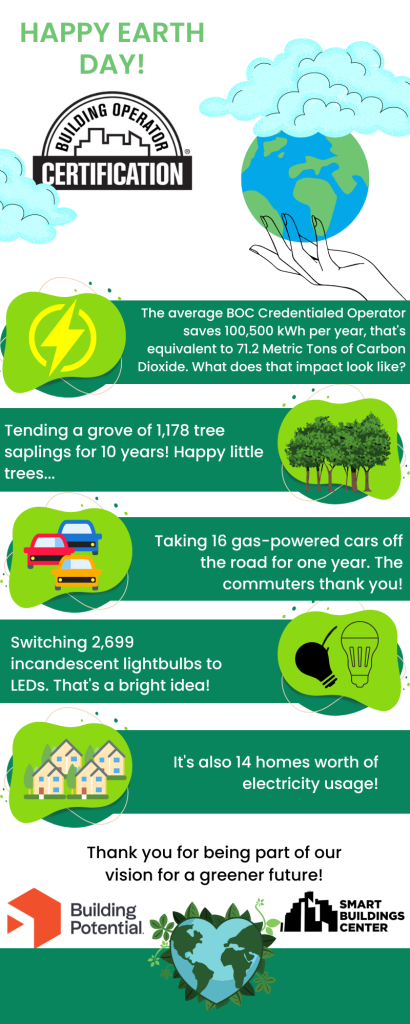 Earth Day is an excellent time to celebrate what an impact our students have on the world. To put that impact into measurable terms check out this infographic with some of the incredible energy savings you can be responsible for with an official certification from the BOC!