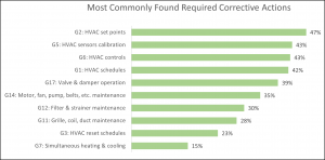 Compliance takes time, often between 6 and 12 months, and many owners use the grace period to complete implementation and verification of required corrective actions. Initiate conversations with your customers now to ensure there is adequate time to complete the on-site building assessment and follow through on required corrective actions. HVAC operations dominate the most commonly found deficiencies. Many including HVAC set point adjustments and sensor calibration fixes were identified and made in nearly half of all Tune-Ups submitted to date.