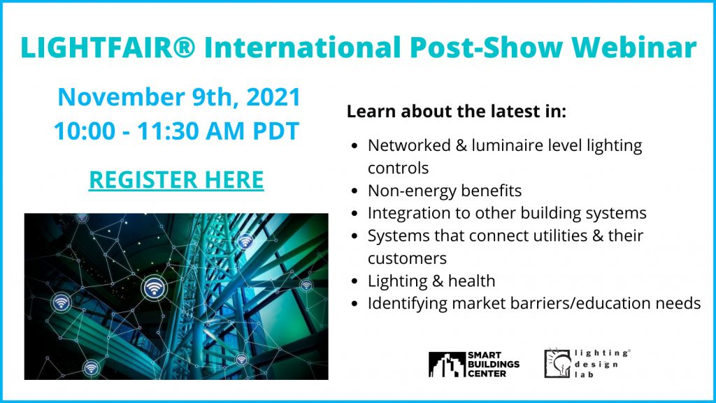 Following LIGHTFAIR® 2021, the Lighting Design Lab and Smart Buildings Center are partnering to bring you post-conference analysis and information exchange! Bring us your questions and be ready to share your own experiences. Favorite new products? Most exciting trends? Let’s “nerd out”!