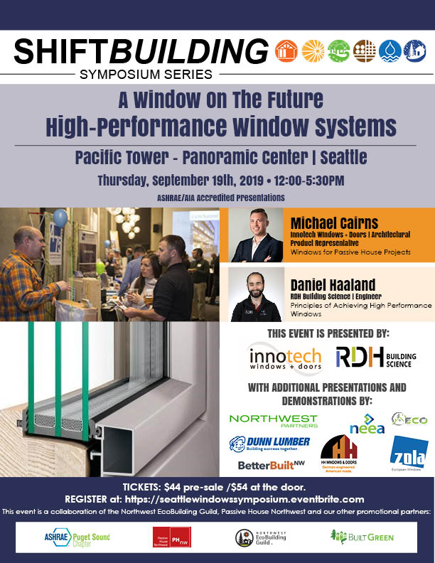 In July 2020, buildings will have to meet new higher energy efficiency standards than ever, now being adopted with the Washington State Energy Code. The right window systems can help buildings reach high-performance goals for lighting, comfort and energy efficient living, while achieving or exceeding these tougher compliance standards. If you are in the business, a student, or a professional wanting to achieve these goals in the future, join us for this month’s NW EcoBuilding Guild ShiftBuilding Symposium: A Window On The Future – High-Performance Window Systems in Bellingham on Wednesday, September 18th from 12:00 PM to 4:00 PM and in Seattle on Thursday, September 19th from 12:00 PM to 5:30 PM.